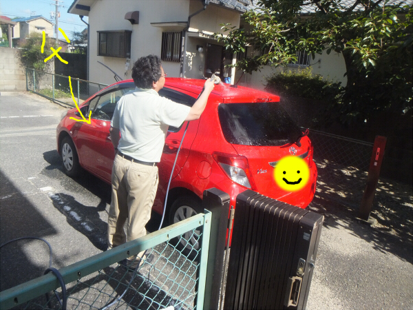 初めての洗車なので、父監修の下、ごしごし洗ってあげました。