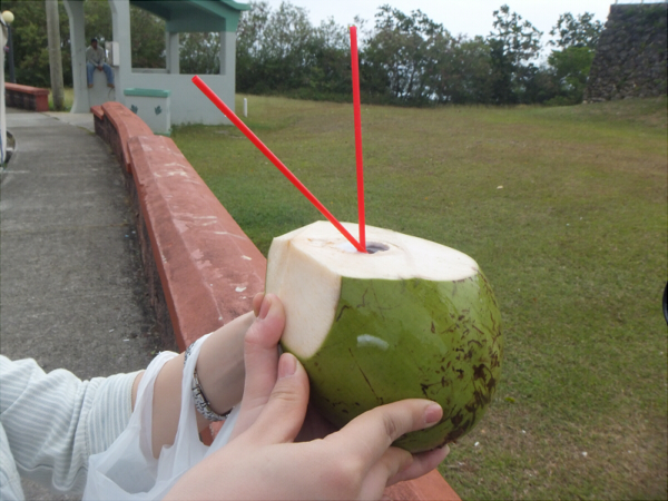 南の島と言ったら・・・と、友人と半分こしたヤシの実。