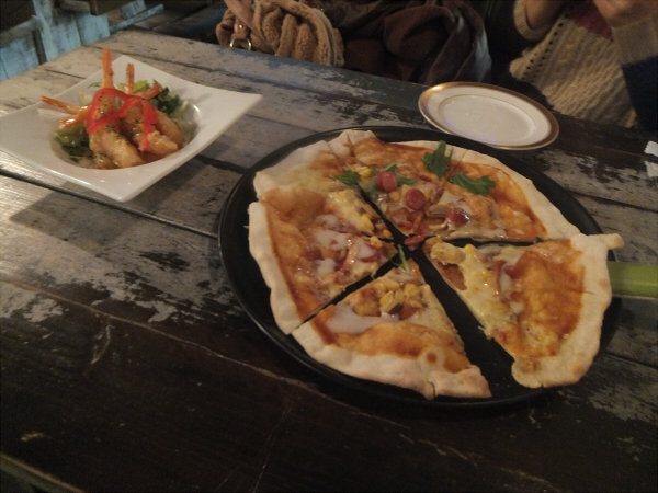 ワンプレートディナーを頼んで、最初に来たピザ(2人分)